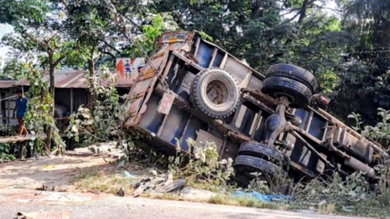 গোপালগঞ্জ-টেকেরহাট মহাসড়কে বেপরোয়া ট্রাকচালকের ধাক্কায় ভ্য