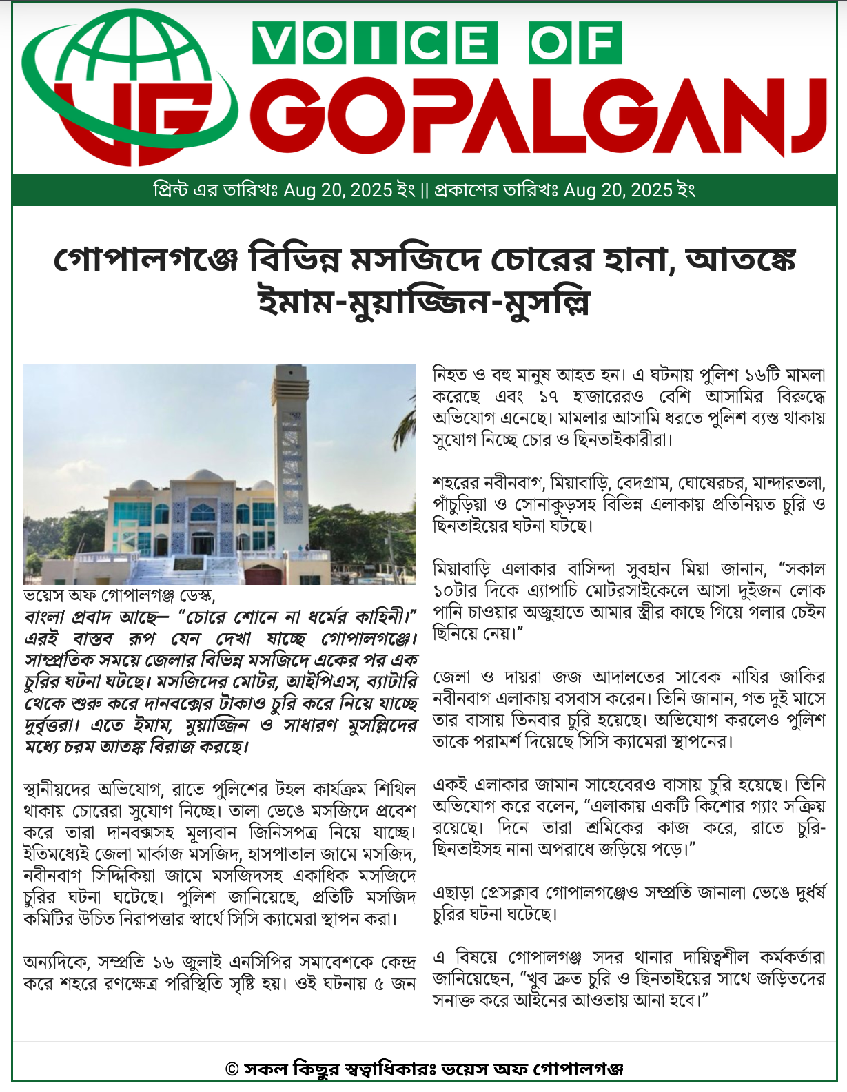 গোপালগঞ্জের বিভিন্ন মসজিদে চুরি