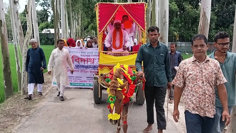 ৩২ বছরের শিক্ষকতা শেষে ঘোড়ার গাড়িতে রাজকীয় বিদায়