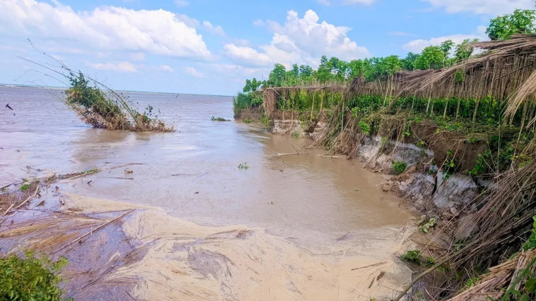 পদ্মার ভাঙনে বিলীন ফসলি জমি ও শ্মশানঘাট